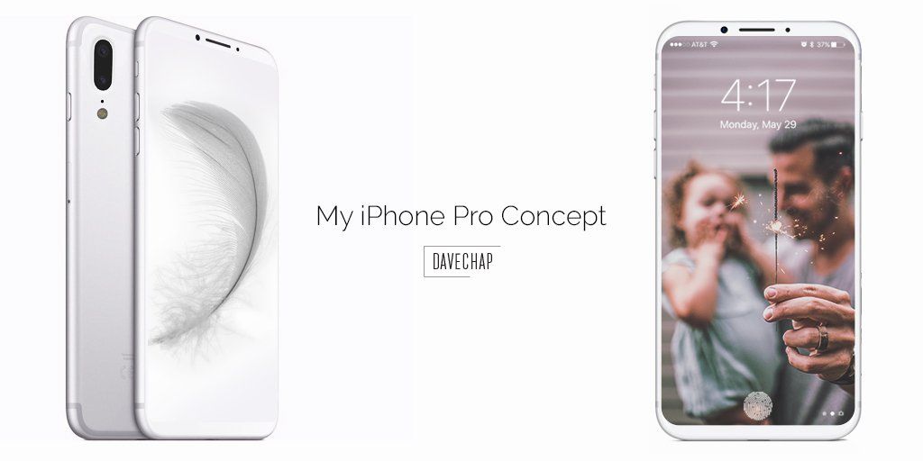L'iPhone di ottava generazione progettato dal popolarissimo designer David Chapman viene chiamato con il seguente nome: iPhone Pro e ricorda in termini di design i modelli attualmente presenti sul mercato. Ovviamente troviamo qualche diversità, come la parte anteriore formata completamente dal pannello e fotocamera sulla scocca posteriore posta non orizzontalmente ma verticalmente.