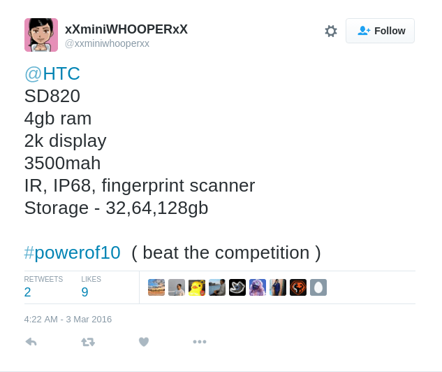 Nelle scorse 24 ore, sul noto social Twitter sono apparse gran parte delle specifiche che dovrebbero accompagnare il prossimo top di gamma di HTC, HTC One M10.