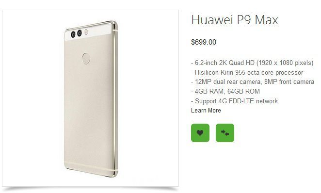 • Huawei P9 Max - Pannello touchscreen con diagonale da 6.2 pollici e risoluzione QHD, processore Kirin 955 con memoria RAM di 4GB e storage da 64GB, fotocamera anteriore da 8 megapixel e posteriore doppia sempre da 12 megapixel - prezzo 699 dollari