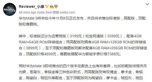 La casa produttrice Huawei nelle ultime 24 ore ha rilasciato online delle notizie sul nuovo smartphone Huawei Mate 9. Salvo imprevisti il top di gamma uscirà 8 Novembre.