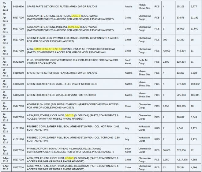 Detto questo, nelle scorse 24 ore, sul noto Zauba è ufficialmente apparse una lista di ricambi per tutte e due i nuovi device, da cui si possono tranquillamente estrapolare dettagli sull'hardware.