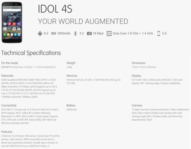 Specifiche Alcatel One Touch Idol 4 e 4S. In vista dell'attesissimo evento Mobile World Congress di Barcellona, la nota casa produttrice Alcatel si sta preparando nel miglior modo possibile a presentare la quarta generazione della gamma Idol, il One Touch Idol 4 e 4S, device dotati da un'ottima componentistica.