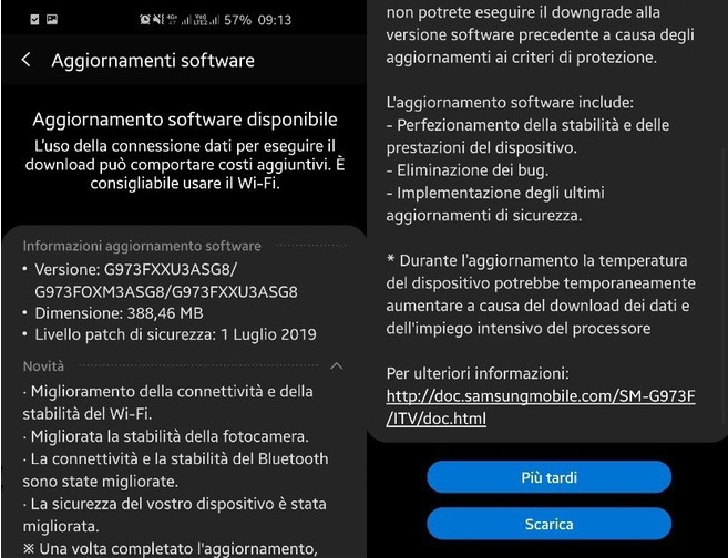 Il Samsung Galaxy S10 da qualche ora si è ufficialmente aggiornato introducendo le patch di sicurezza di luglio anche in Italia.